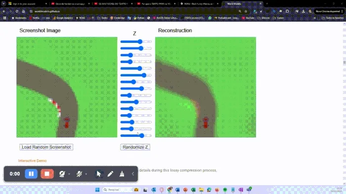 Apenas com a imagem do status atual da interface do jogo e com inputs das ações do jogador, a IA tenta prever o próximo estado da interface. No exemplo abaixo temos a IA gerado a interface enquanto alguns parâmetros são alterados: