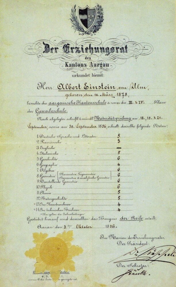 Ao serem encontrados os registros escolares do pequeno Einstein, assumiram inicialmente que, por sua origem alemã, as notas ali expressas indicassem um aluno com terrível performance acadêmica quando, na verdade, estavam diante de um boletim ‘nota 10’ em história, álgebra, geometria, geometria descritiva e física.