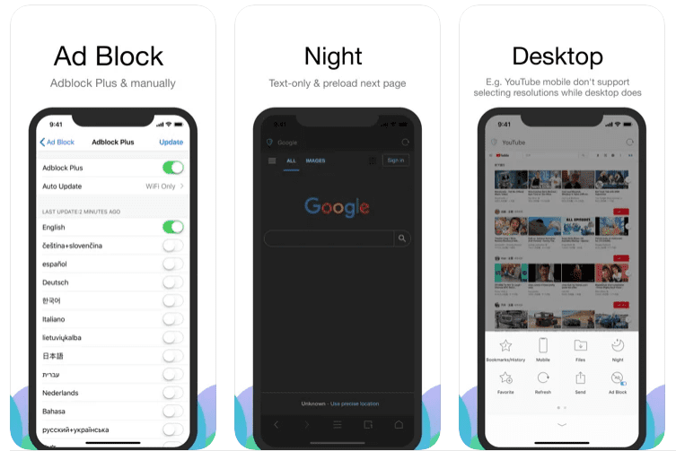 - Adblock Plus embutido, suporte para edição manual de anúncios com tags, blindagem automática de anúncios intrusivos.