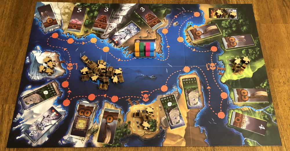 O tabuleiro é uma corrida por recursos, espaços, melhorias e pontuações extras. É sempre preciso ponderar onde ir, o que colocar no navio, quando atacar e como evitar que o adversário saia melhor do que você. A graça do jogo está aqui e em recomeçar a cada uma das quatro jornadas.