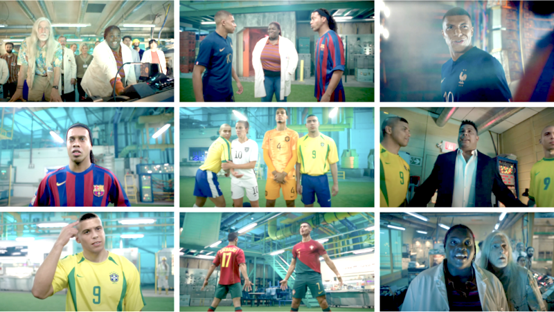 O filme, de pouco mais de 4 minutos de duração, transforma tudo numa bagunça futebolística, com personagens do passado, do presente – e até fictícios entrando em campo. Entre eles, nomes como a atacante da seleção americana, Alex Morgan; Phil Foden, do Manchester City e seleção inglesa; e Van Dijk, capitão do Liverpool e da seleção holandesa – também representada pelo ícone Edgard Davids.